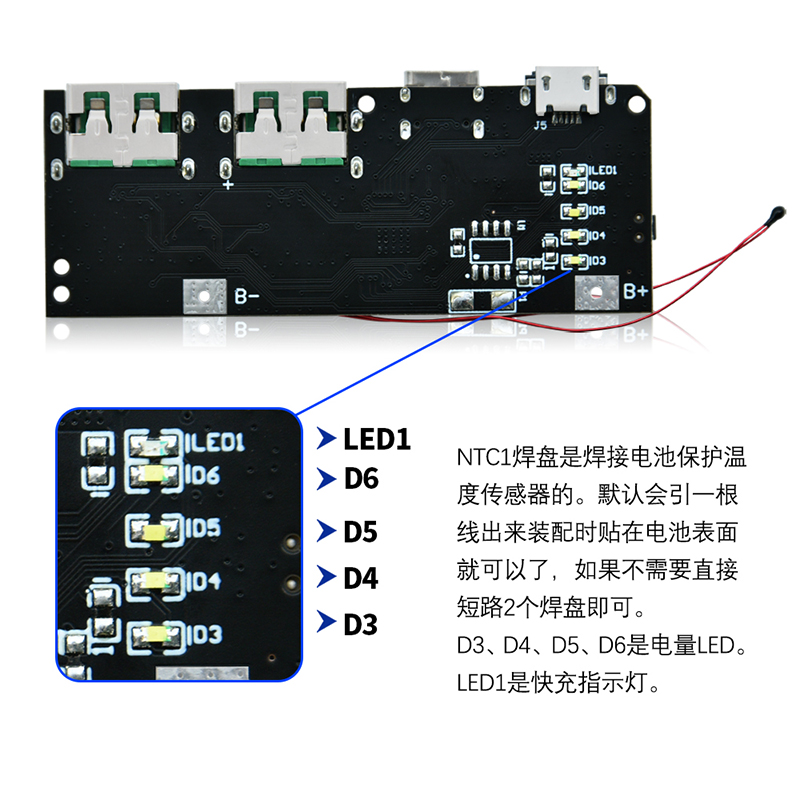 MD0534 Type-c充电口双usb充电宝电源板22.5W diy充电宝主板PCBA充电主板